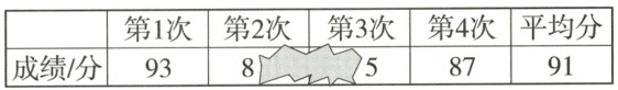 6. 下表记录了宁宁四次百科知识竞赛的成绩,但不小心被弄脏了,宁宁第2次得了( )分。