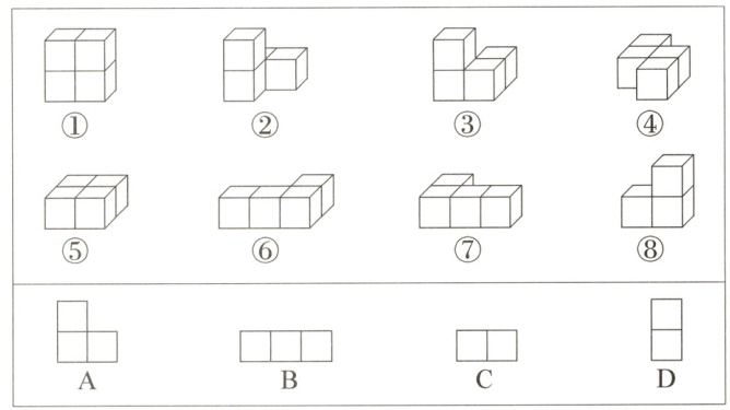 (5)立体图形( )和( )从右面看到的形状是图形D。