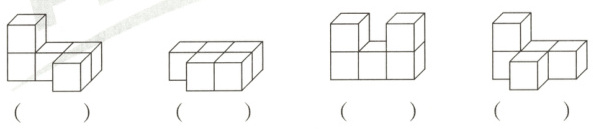 。下面是四名同学搭的几何体,他们搭的对吗?对的在括号里画“〇”,错的画“△”。