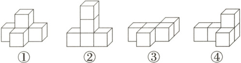 4. 从正面可以看到3个小正方形,从左面可以看到2个小正方形的立体图形是( )。