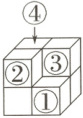 7. 用7个同样的正方体摆成1个物体(如图)。从标有①②③④的正方体中拿走一个后,剩下的部分从前面、上面和左面看到的图形都是