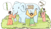 解析:本题考查对寓言故事的积累。第一幅图中,船在水中行走,船头的人俯身望着沉到水里的剑,在船身上刻记号,这是寓言故事《刻舟求剑》里的情节。第二幅图中,站着的人从商贩手里买走了精致的木盒,却把盒里的珠宝还给了商贩,这是寓言故事《买椟还珠》里的情节。第三幅图中,三个人正围着一头大象,根据他们摸大象的位置及他们脑中想到的事物可知,这是寓言故事《盲人摸象》里的情节。第四幅图中,一个人正拿着一根木条修补羊圈,里面圈着几只羊,可知这是寓言故事《亡羊补牢》里的情节。