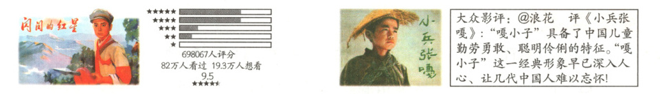 (1)材料一中,影片《闪闪的红星》比影片《小兵张嘎》更受欢迎。( )