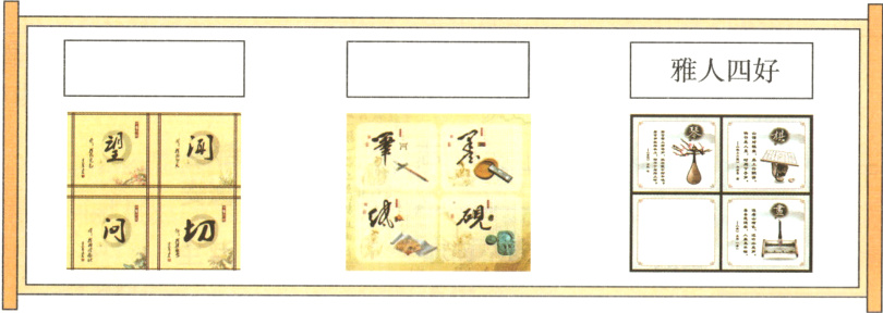 @@A解析:本题考查传统文化。“雅人四好”包括“琴棋书画”,图中“书”的位置是空白的,因此选择“书”。A、B两项中,A的图画风格与“琴棋画”更一致,故选A。
