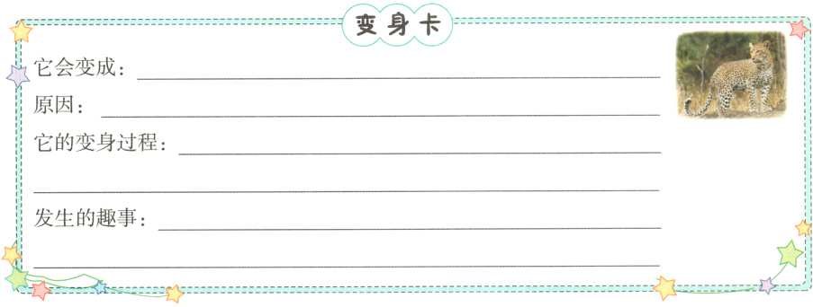 解析:本题考查创意表达的能力。注意要写出变身事物的特点、变身的过程、变身后做的有趣的事情等。