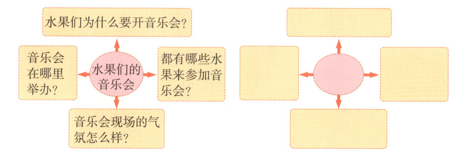 解析:本题考查理清习作思路的能力。确定自己要写的习作内容,围绕一个中心发散思维从不同角度填写即可,答案不唯一。