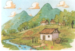 (从左到右)溪边垂钓 江中戏水 孩子、浪花 松树、雨珠、小蘑菇、头戴斗笠的孩子