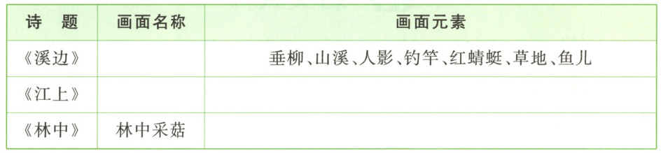 四【插图方案】为了能更好地为诗配画,阳阳梳理了诗歌内容,请帮他填一填。