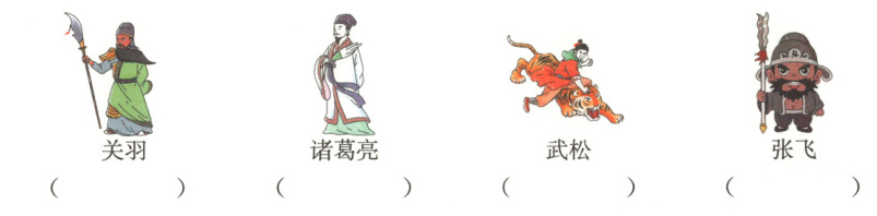 四【细心辨英雄】奇奇喜欢名著里面的英雄好汉,下面是他搜集到的图片。读句子,把序号填在相应人物下面的括号内,再按要求填空。