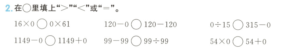 0 + 100 = 100 - 0 = 0 × 54 = 0 ÷ 15 =
