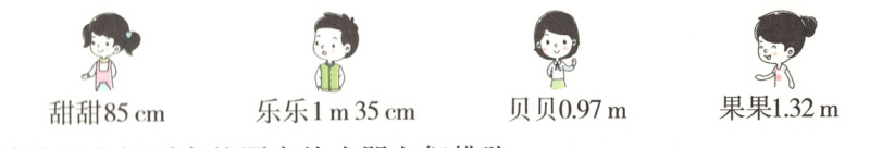 (1)请你按由矮到高的顺序给小朋友们排队。