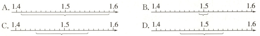 5. 一个两位小数精确到十分位是1.5,这个两位小数的取值范围是( )。