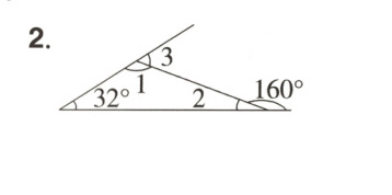 2. $\angle2 = 180^{\circ}-160^{\circ}=20^{\circ}$