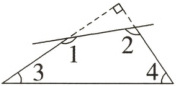 2. 一张直角三角形纸片,将直角剪去后,得到一个四边形(如图所示),求∠1 + ∠2的度数。
