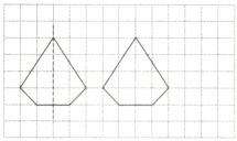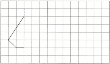 3. 先根据对称轴补全下面这个轴对称图形,再画出这个轴对称图形向右平移5格后的图形。