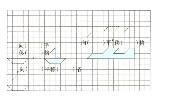 4. 如图所示,要使左上角的图形经过平移插入下面的空白处,使涂色部分成为一个长方形,应怎样移动?