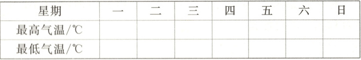 先把这一周的气温填写在上表中,再计算出这一周的平均最高气温和平均最低气温。