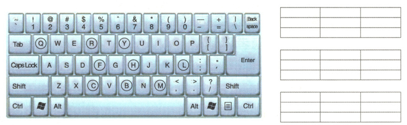 键盘中带圆圈的字母的小写字母即电脑开机密码。请依次写出密码,帮阳阳开机。