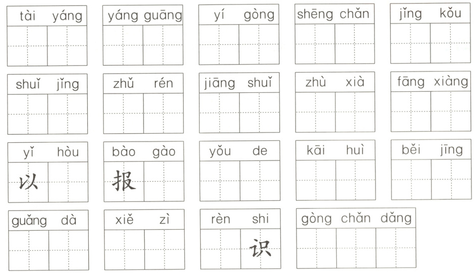 太阳 阳光 一共 生产 井口 水井 主人 江水 住下 方向 后告 有的 开会 北京 广大 写字 认 共产党