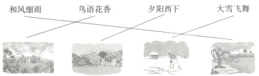 解析:本题考查字形和读图能力。书写时要注意字的间架结构和在田字格中的占位,尽量书写美观。注意“鸟语花香”的“语”是“语言”的“语”。根据图片将相应的词语连在一起即可。