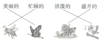 解析:本题考查对短文内容的理解。由“小花一朵一朵地盛开……美丽的蝴蝶在空中飞舞……忙碌的蜜蜂像一个个红娘”“春天的鸟儿特别活泼”及图片可知答案,据此连线即可。