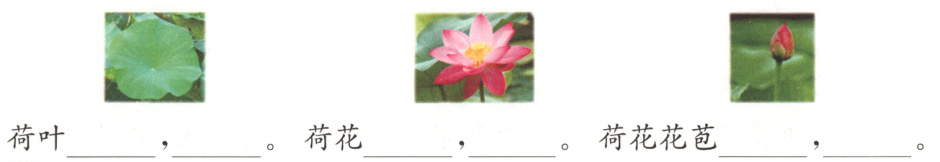 二【画中的荷】小朋友笔下的荷是什么样子的?看图,照样子,填一填。