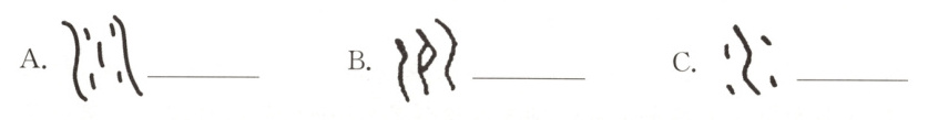 解析:本题考查对材料内容的分析。材料一的第二句话和材料二、三中的第一句话分别解释了“水”“川”“州”的意思。再结合图片可判断,图A为“川”字,图B为“州”字,图C为“水”字。