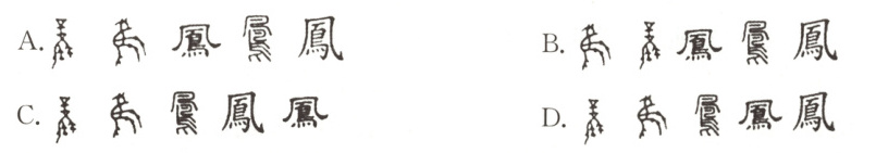 解析:本题考查汉字的演变。 是甲骨文, 是金文, 是小篆, 是隶书, 是楷书。故选D。