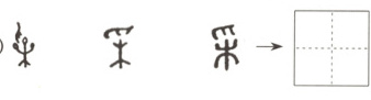 解析:本题考查汉字的字体演变。结合图片和“豆”的本义,可写出该字。“采”是会意字,结合图片可知,“采”表示用手在树上采摘果实和叶子。本义:用手指轻轻摘取。