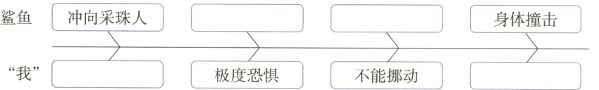 1. 读选段,找出鲨鱼来袭的情节和“我”的反应,完成思维导图。
