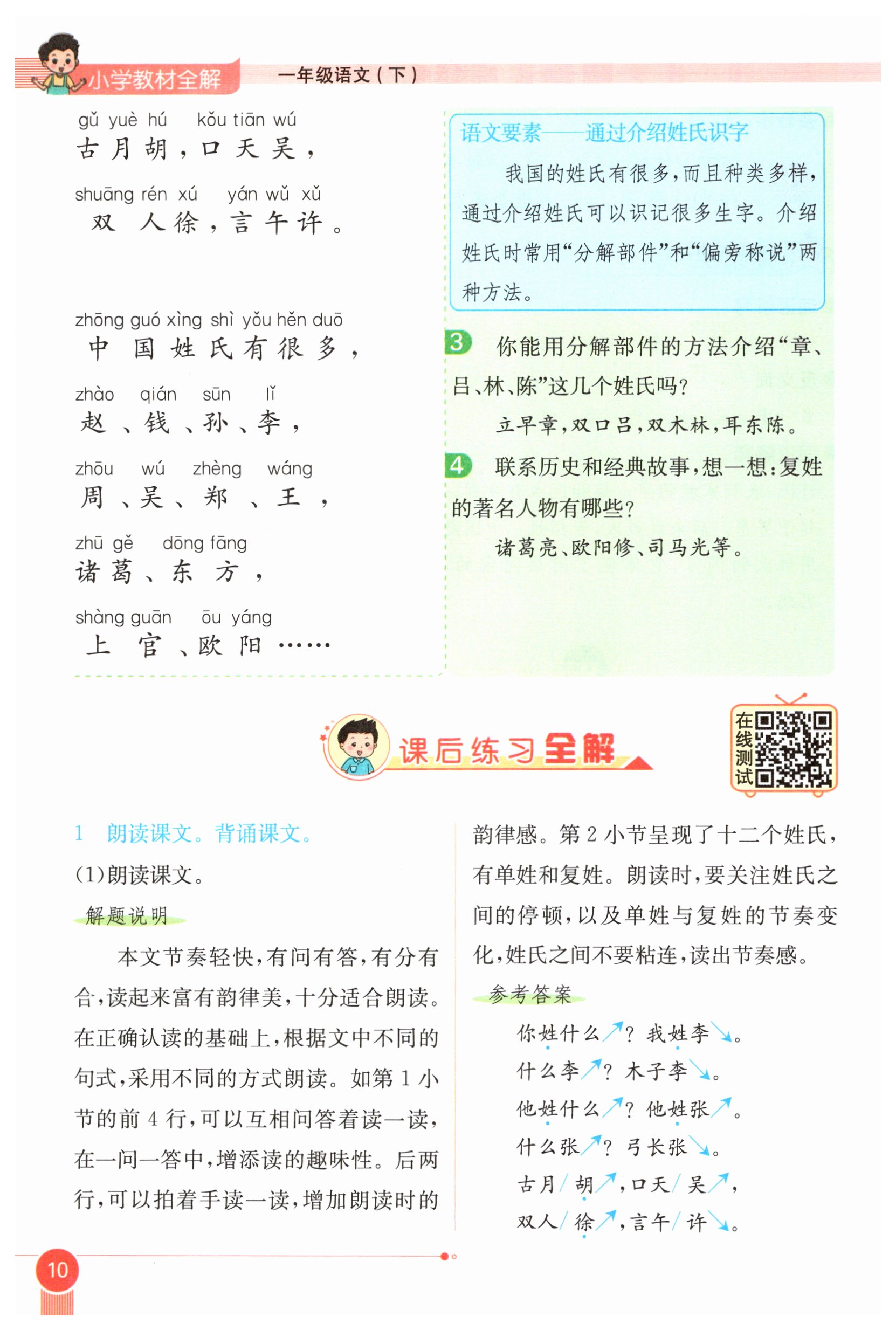 注:目前有些书本章节名称可能整理的还不是很完善,但都是按照顺序排列的,请同学们按照顺序仔细查找。练习册 2025年教材全解一年级语文下册人教版 答案主要是用来给同学们做完题方便对答案用的,请勿直接抄袭。