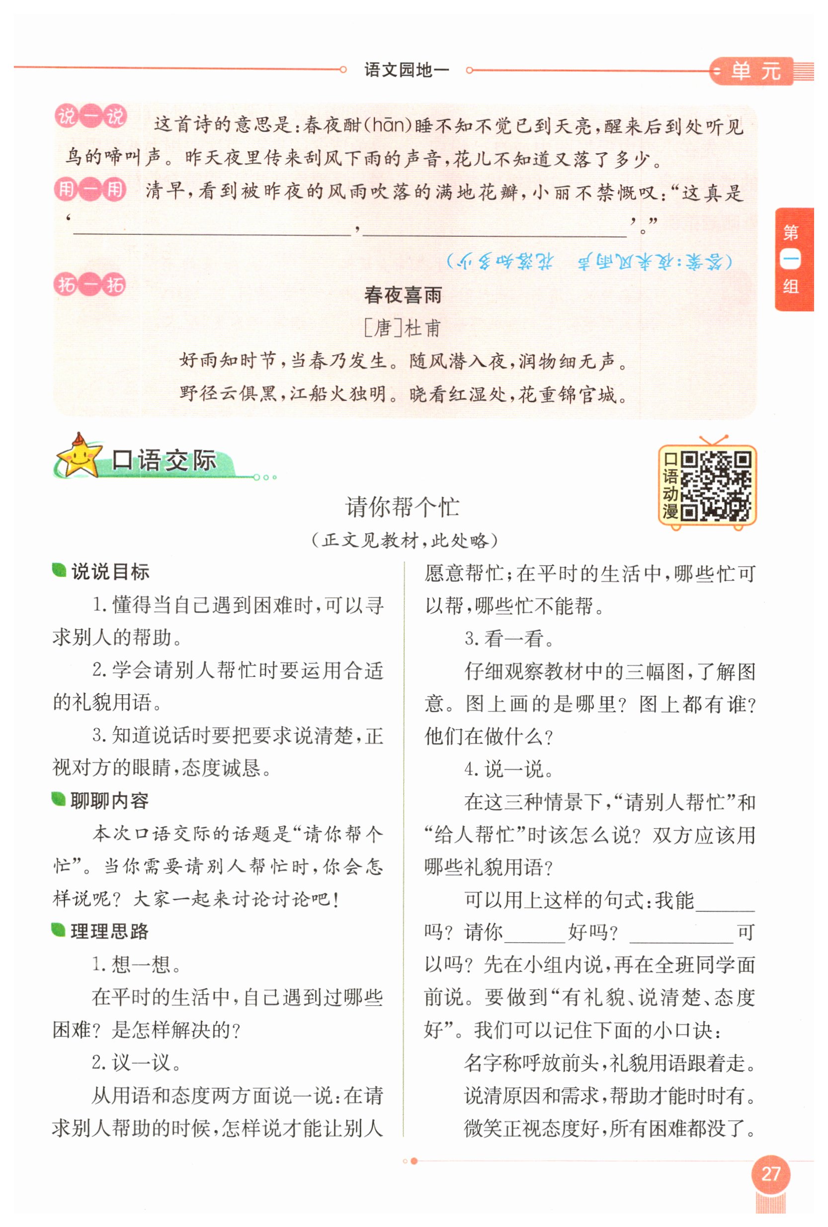 注:目前有些书本章节名称可能整理的还不是很完善,但都是按照顺序排列的,请同学们按照顺序仔细查找。练习册 2025年教材全解一年级语文下册人教版 答案主要是用来给同学们做完题方便对答案用的,请勿直接抄袭。