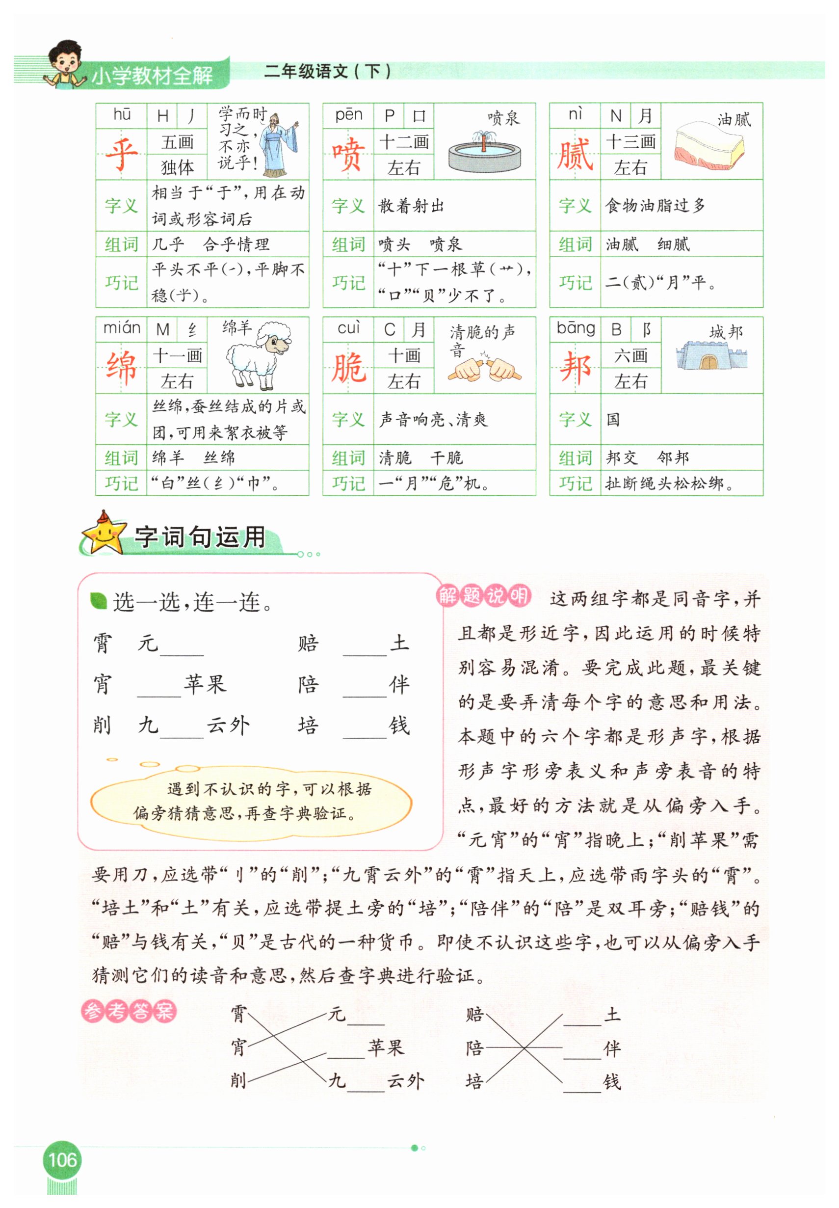 注:目前有些书本章节名称可能整理的还不是很完善,但都是按照顺序排列的,请同学们按照顺序仔细查找。练习册 2025年教材全解二年级语文下册人教版 答案主要是用来给同学们做完题方便对答案用的,请勿直接抄袭。