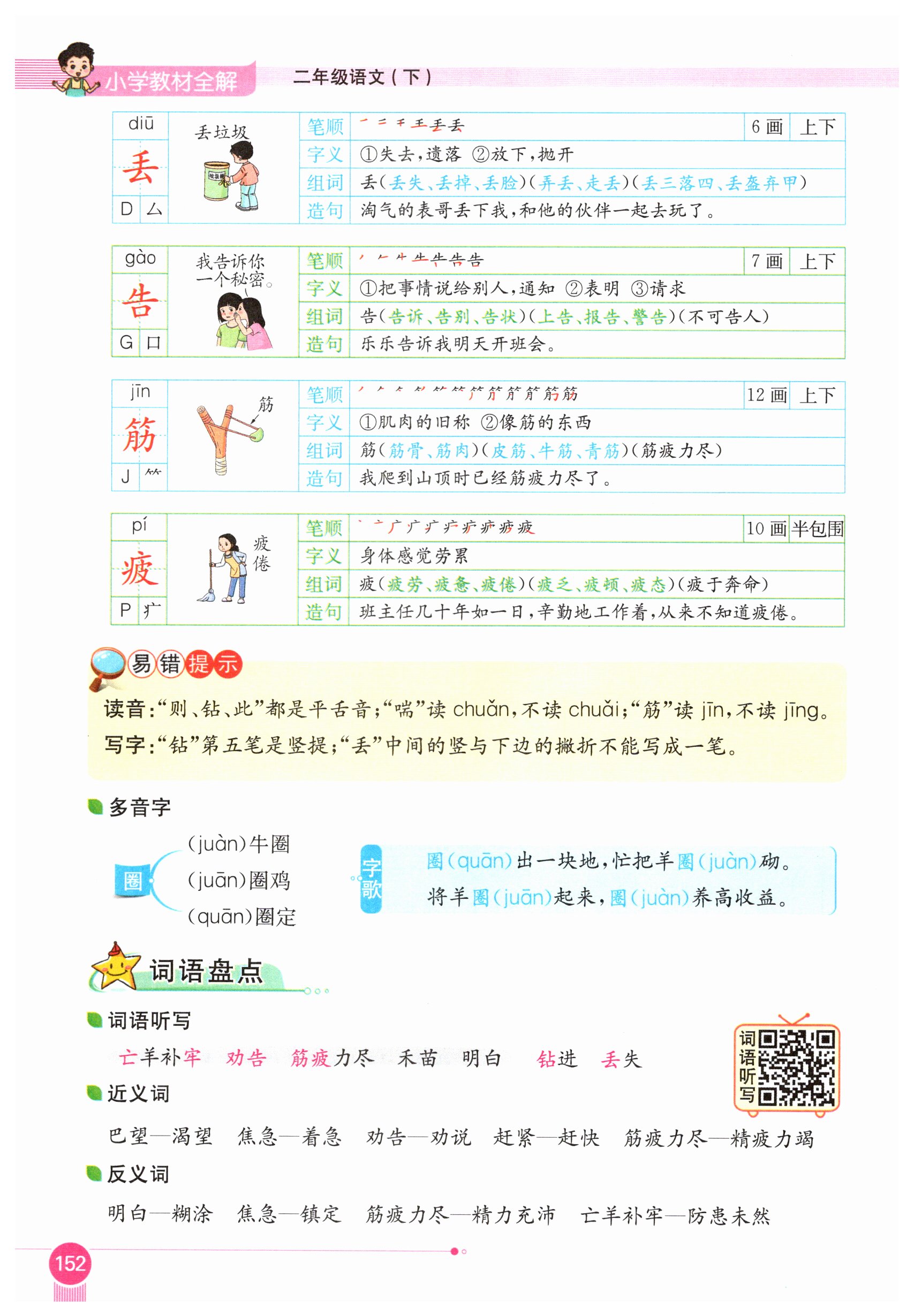 注:目前有些书本章节名称可能整理的还不是很完善,但都是按照顺序排列的,请同学们按照顺序仔细查找。练习册 2025年教材全解二年级语文下册人教版 答案主要是用来给同学们做完题方便对答案用的,请勿直接抄袭。
