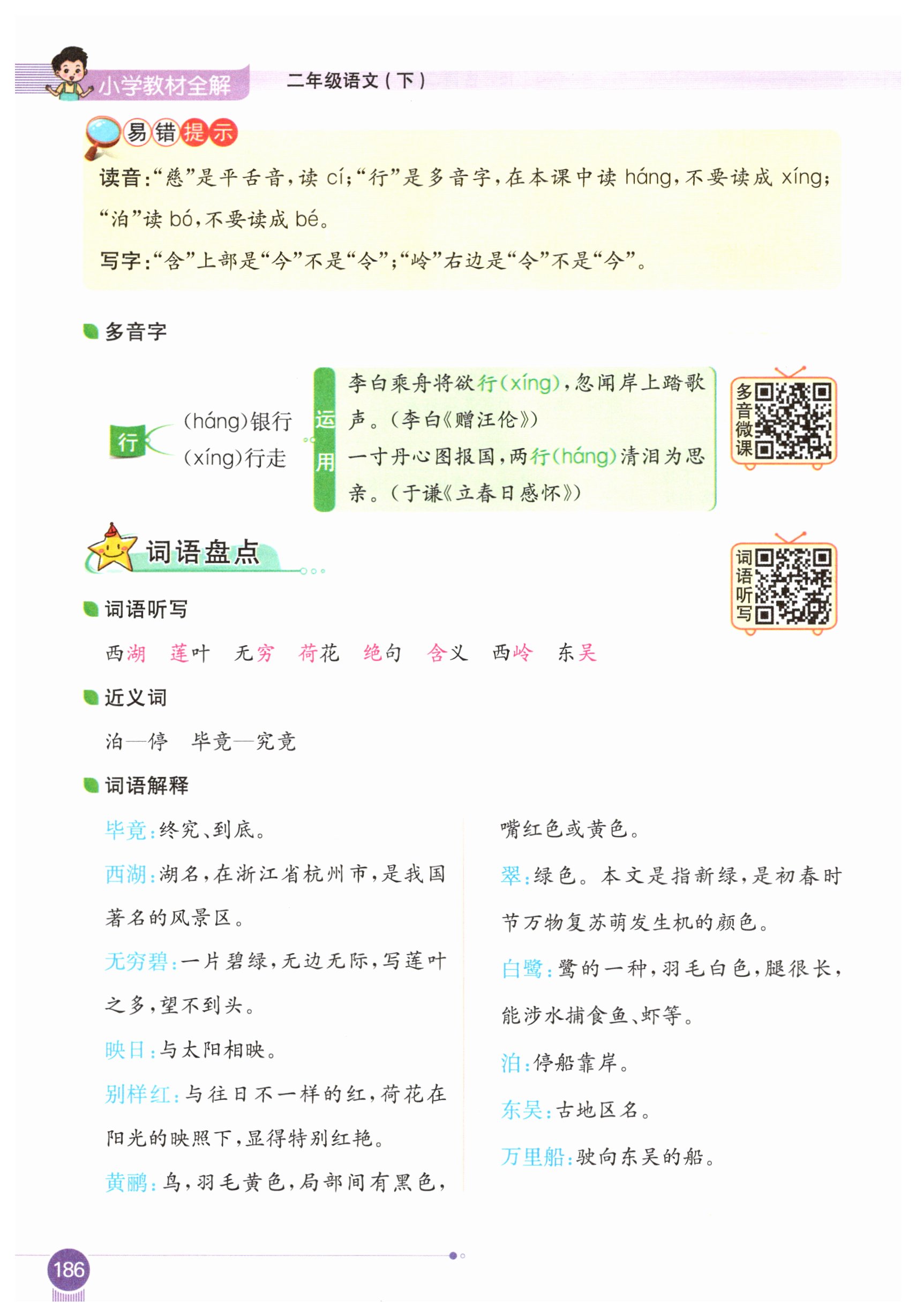 注:目前有些书本章节名称可能整理的还不是很完善,但都是按照顺序排列的,请同学们按照顺序仔细查找。练习册 2025年教材全解二年级语文下册人教版 答案主要是用来给同学们做完题方便对答案用的,请勿直接抄袭。
