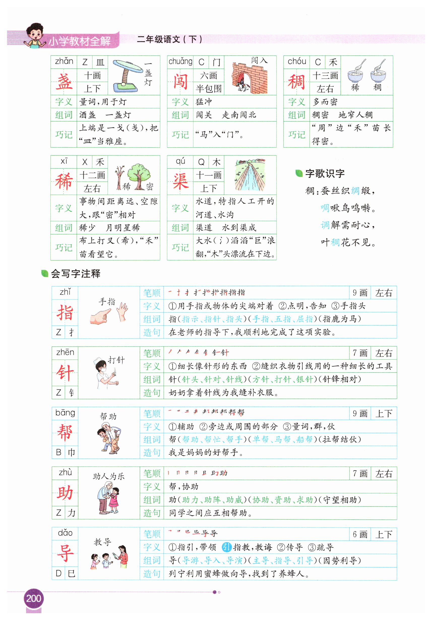 注:目前有些书本章节名称可能整理的还不是很完善,但都是按照顺序排列的,请同学们按照顺序仔细查找。练习册 2025年教材全解二年级语文下册人教版 答案主要是用来给同学们做完题方便对答案用的,请勿直接抄袭。