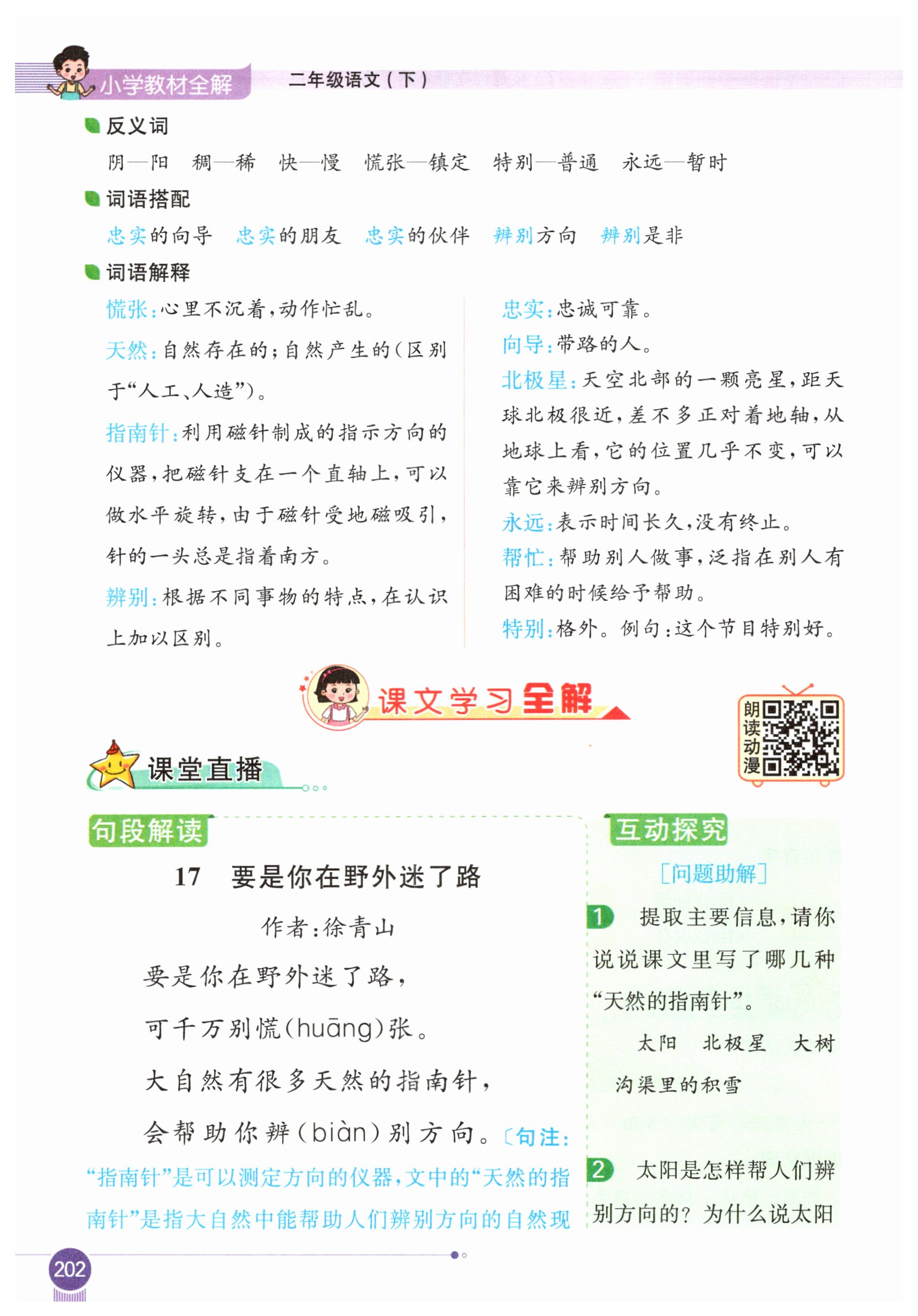 注:目前有些书本章节名称可能整理的还不是很完善,但都是按照顺序排列的,请同学们按照顺序仔细查找。练习册 2025年教材全解二年级语文下册人教版 答案主要是用来给同学们做完题方便对答案用的,请勿直接抄袭。