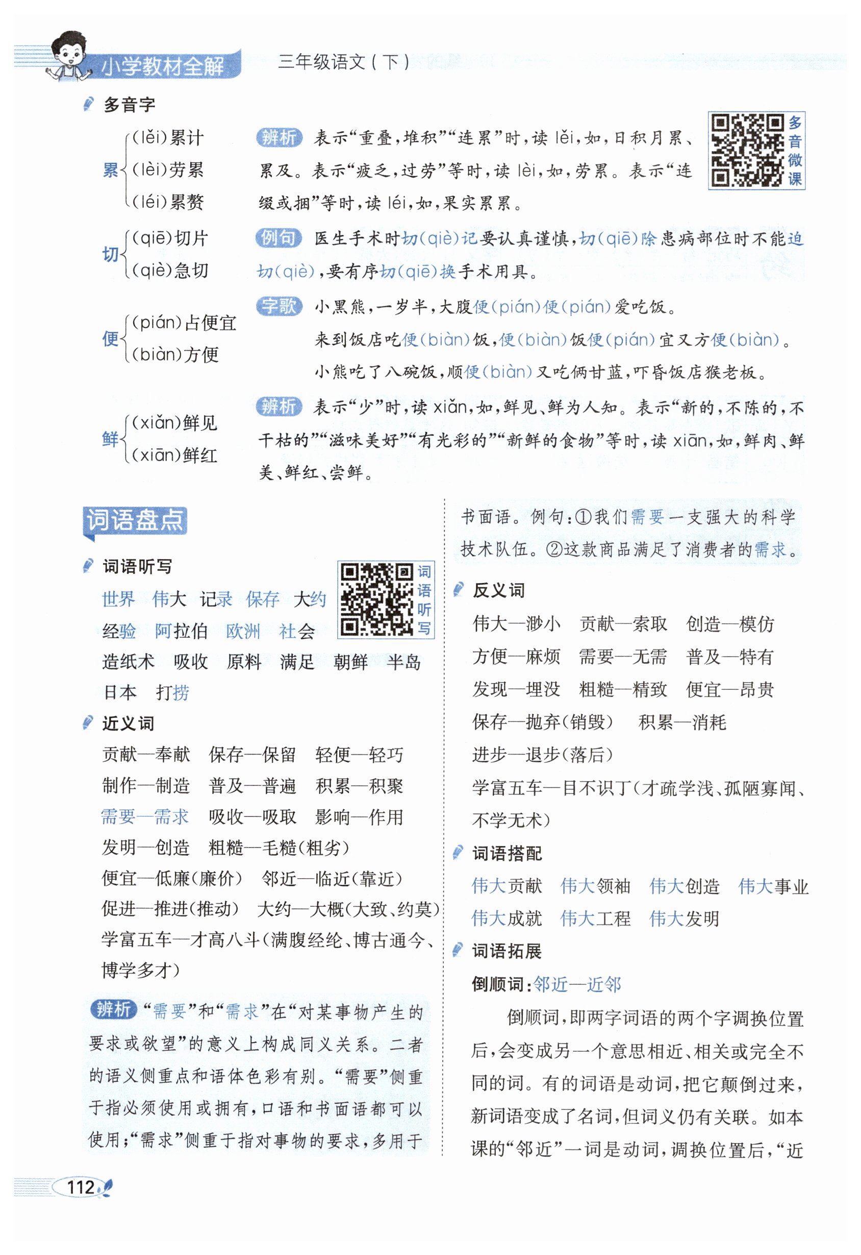 注:目前有些书本章节名称可能整理的还不是很完善,但都是按照顺序排列的,请同学们按照顺序仔细查找。练习册 2025年教材全解三年级语文下册人教版 答案主要是用来给同学们做完题方便对答案用的,请勿直接抄袭。