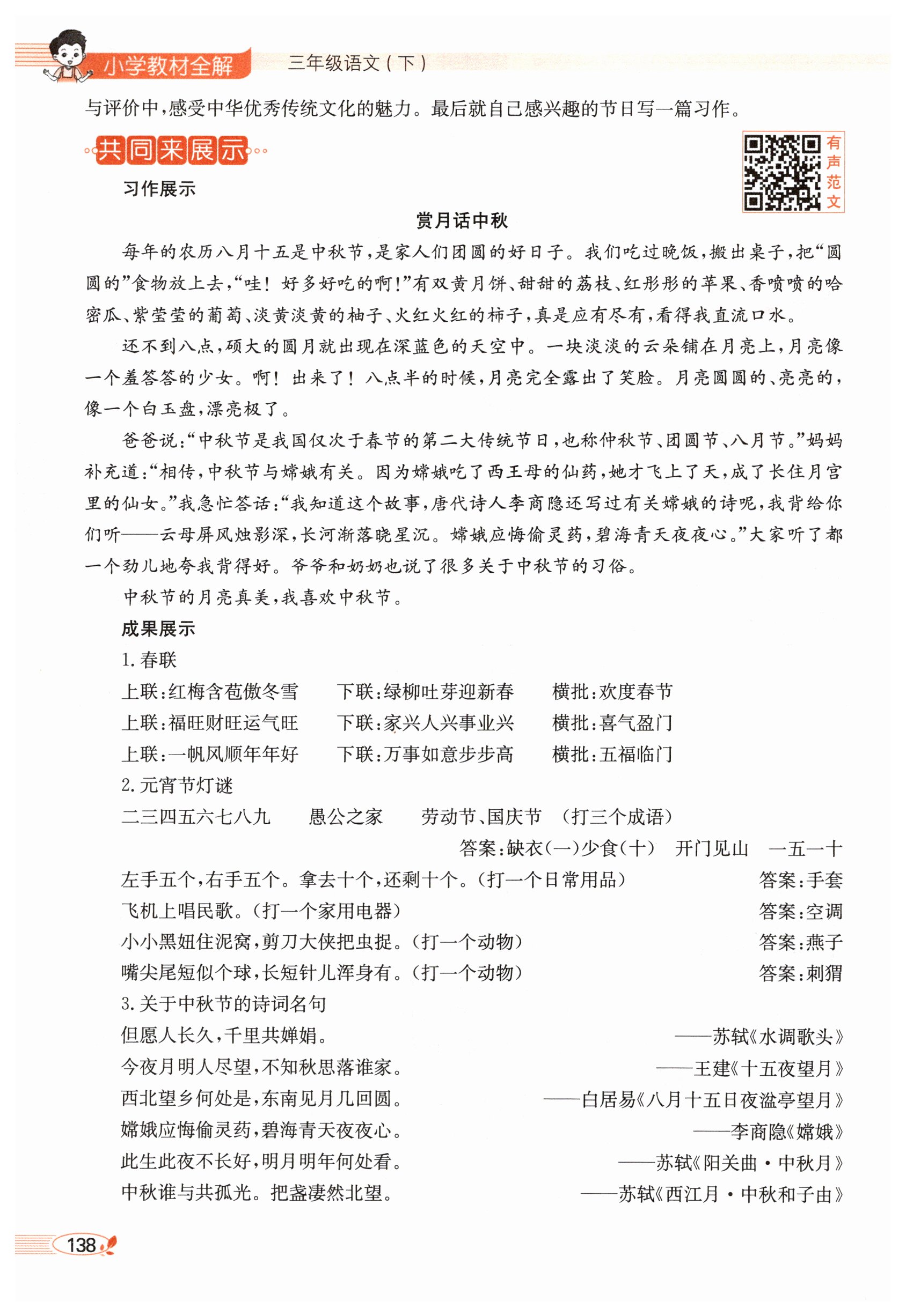 注:目前有些书本章节名称可能整理的还不是很完善,但都是按照顺序排列的,请同学们按照顺序仔细查找。练习册 2025年教材全解三年级语文下册人教版 答案主要是用来给同学们做完题方便对答案用的,请勿直接抄袭。