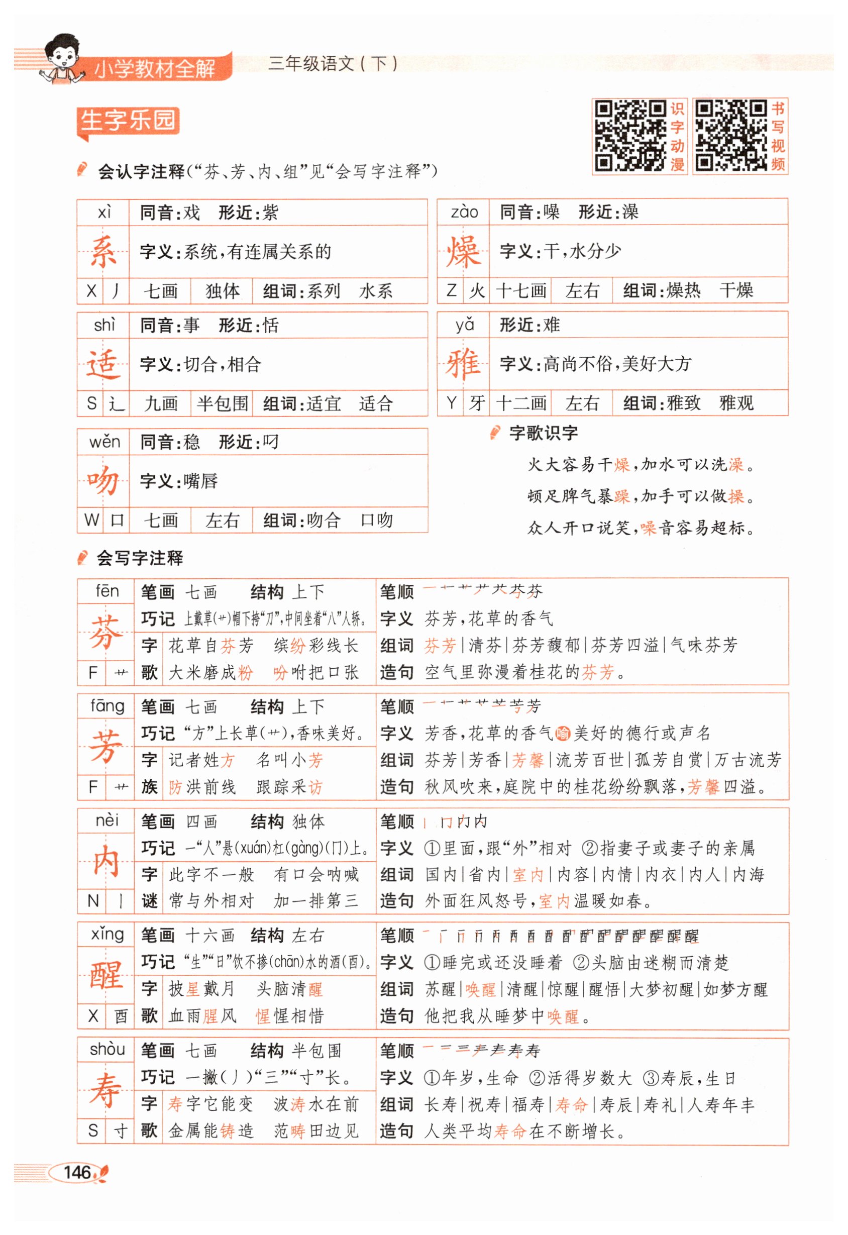 注:目前有些书本章节名称可能整理的还不是很完善,但都是按照顺序排列的,请同学们按照顺序仔细查找。练习册 2025年教材全解三年级语文下册人教版 答案主要是用来给同学们做完题方便对答案用的,请勿直接抄袭。