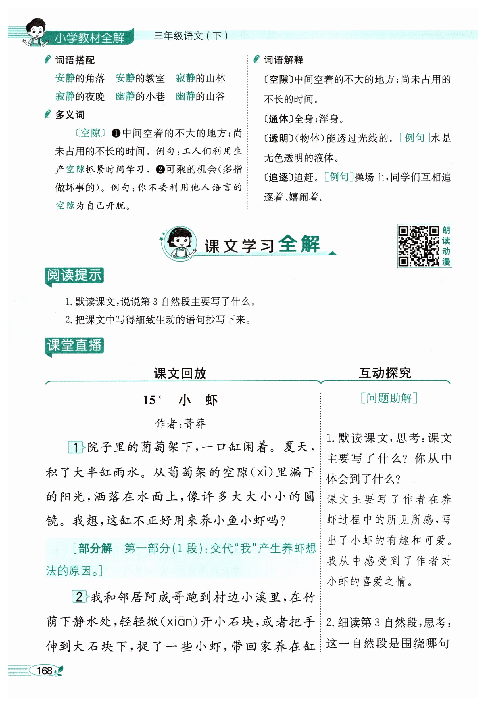 注:目前有些书本章节名称可能整理的还不是很完善,但都是按照顺序排列的,请同学们按照顺序仔细查找。练习册 2025年教材全解三年级语文下册人教版 答案主要是用来给同学们做完题方便对答案用的,请勿直接抄袭。