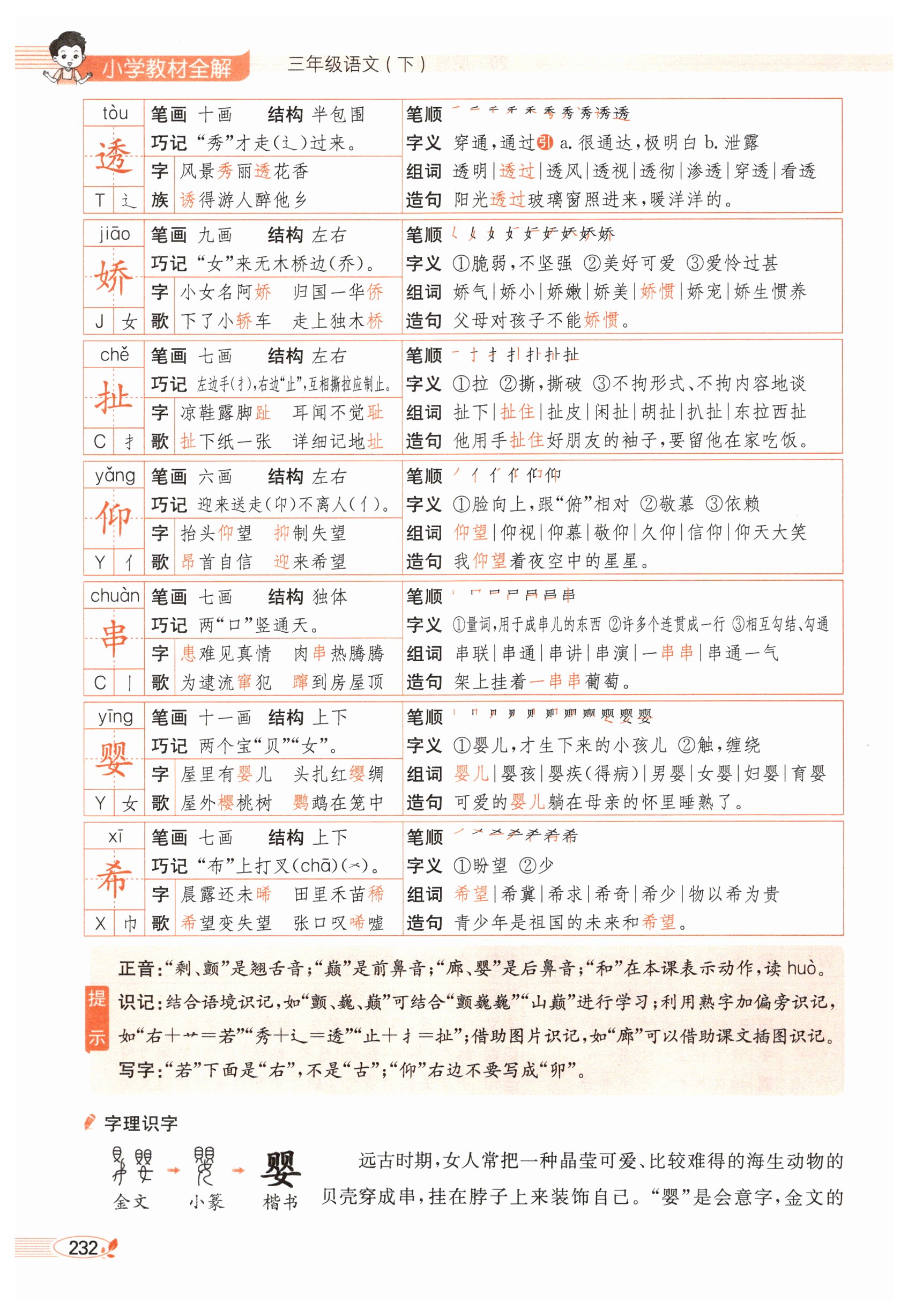 注:目前有些书本章节名称可能整理的还不是很完善,但都是按照顺序排列的,请同学们按照顺序仔细查找。练习册 2025年教材全解三年级语文下册人教版 答案主要是用来给同学们做完题方便对答案用的,请勿直接抄袭。