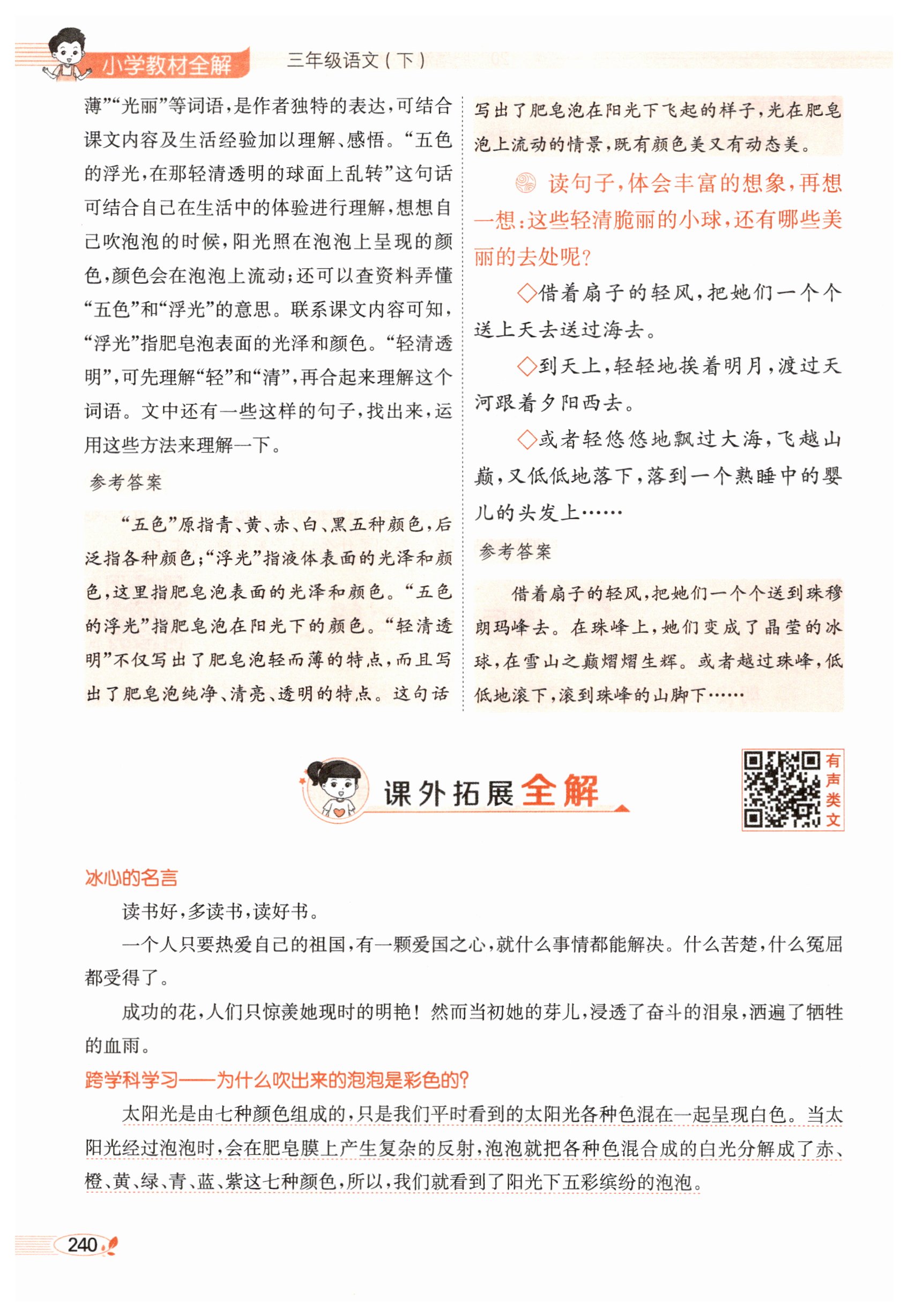注:目前有些书本章节名称可能整理的还不是很完善,但都是按照顺序排列的,请同学们按照顺序仔细查找。练习册 2025年教材全解三年级语文下册人教版 答案主要是用来给同学们做完题方便对答案用的,请勿直接抄袭。