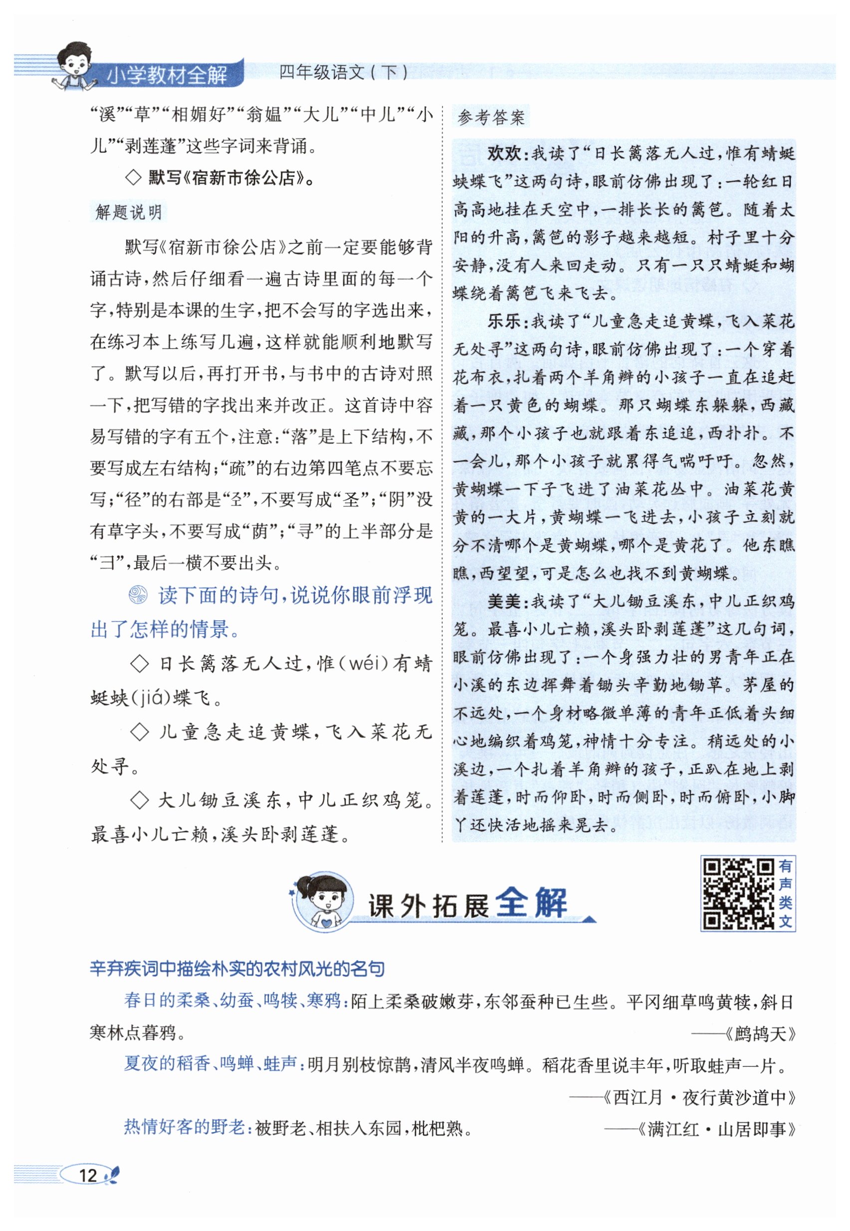 注:目前有些书本章节名称可能整理的还不是很完善,但都是按照顺序排列的,请同学们按照顺序仔细查找。练习册 2025年教材全解四年级语文下册人教版 答案主要是用来给同学们做完题方便对答案用的,请勿直接抄袭。