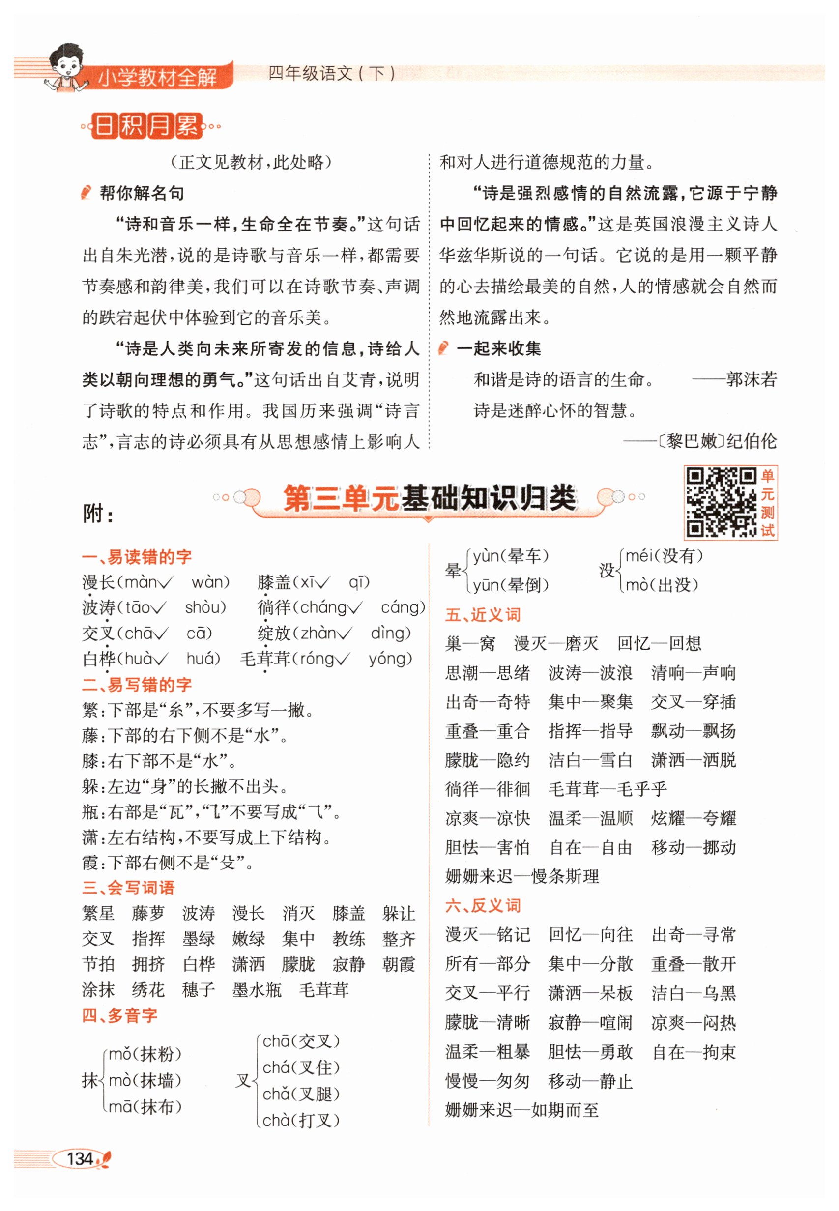 注:目前有些书本章节名称可能整理的还不是很完善,但都是按照顺序排列的,请同学们按照顺序仔细查找。练习册 2025年教材全解四年级语文下册人教版 答案主要是用来给同学们做完题方便对答案用的,请勿直接抄袭。