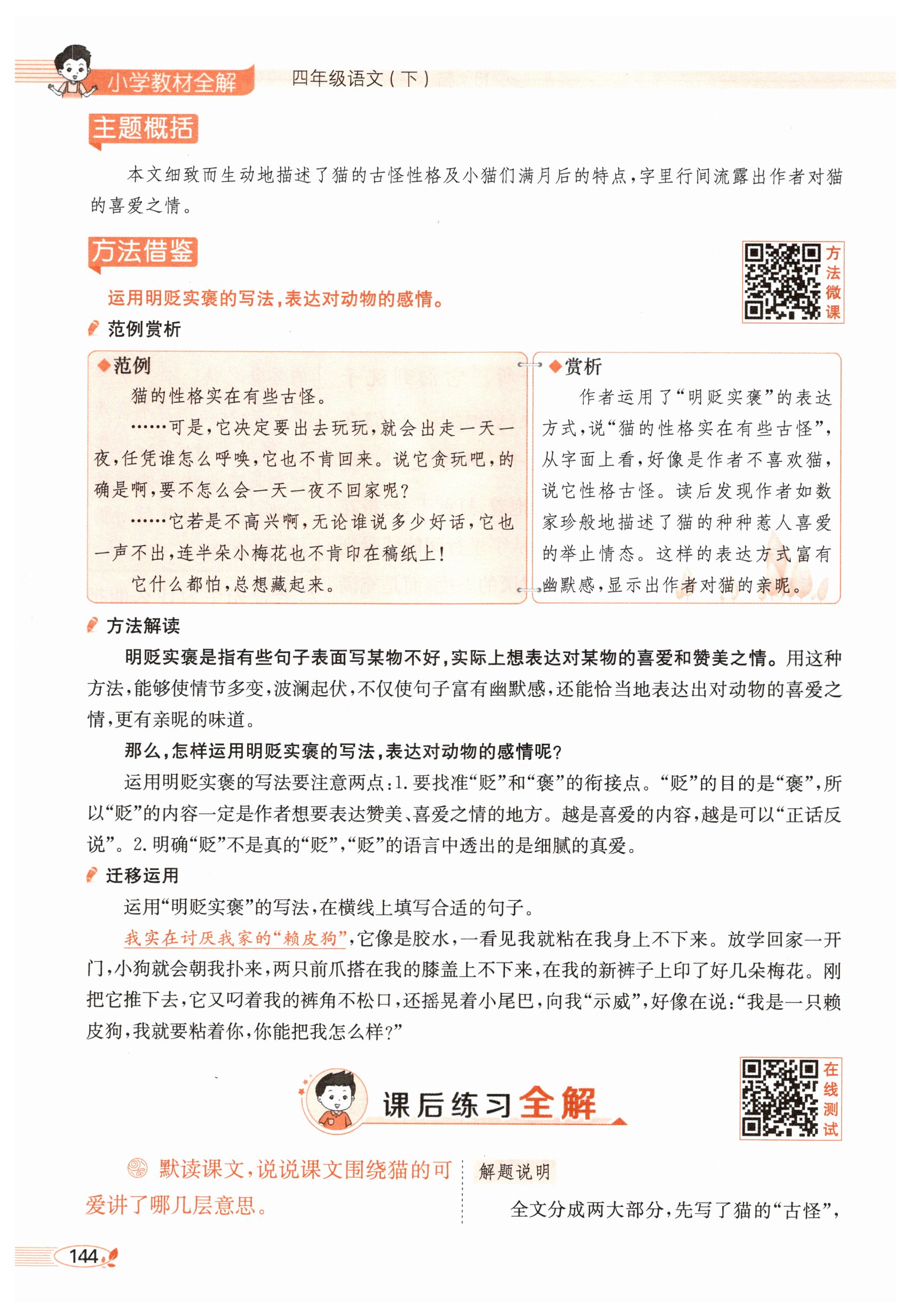 注:目前有些书本章节名称可能整理的还不是很完善,但都是按照顺序排列的,请同学们按照顺序仔细查找。练习册 2025年教材全解四年级语文下册人教版 答案主要是用来给同学们做完题方便对答案用的,请勿直接抄袭。