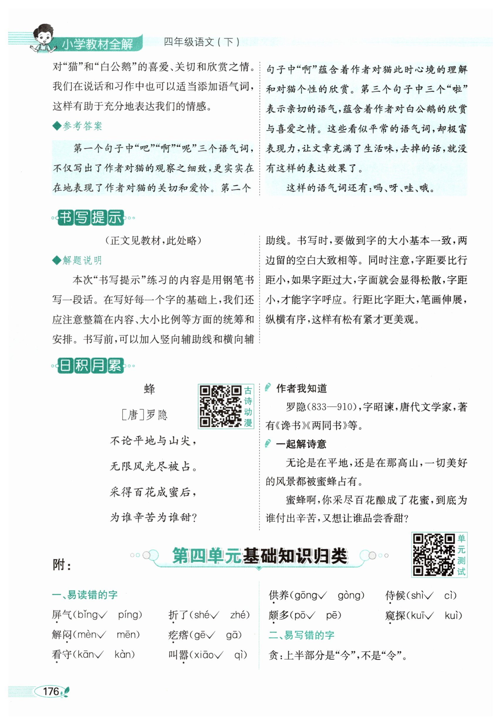 注:目前有些书本章节名称可能整理的还不是很完善,但都是按照顺序排列的,请同学们按照顺序仔细查找。练习册 2025年教材全解四年级语文下册人教版 答案主要是用来给同学们做完题方便对答案用的,请勿直接抄袭。