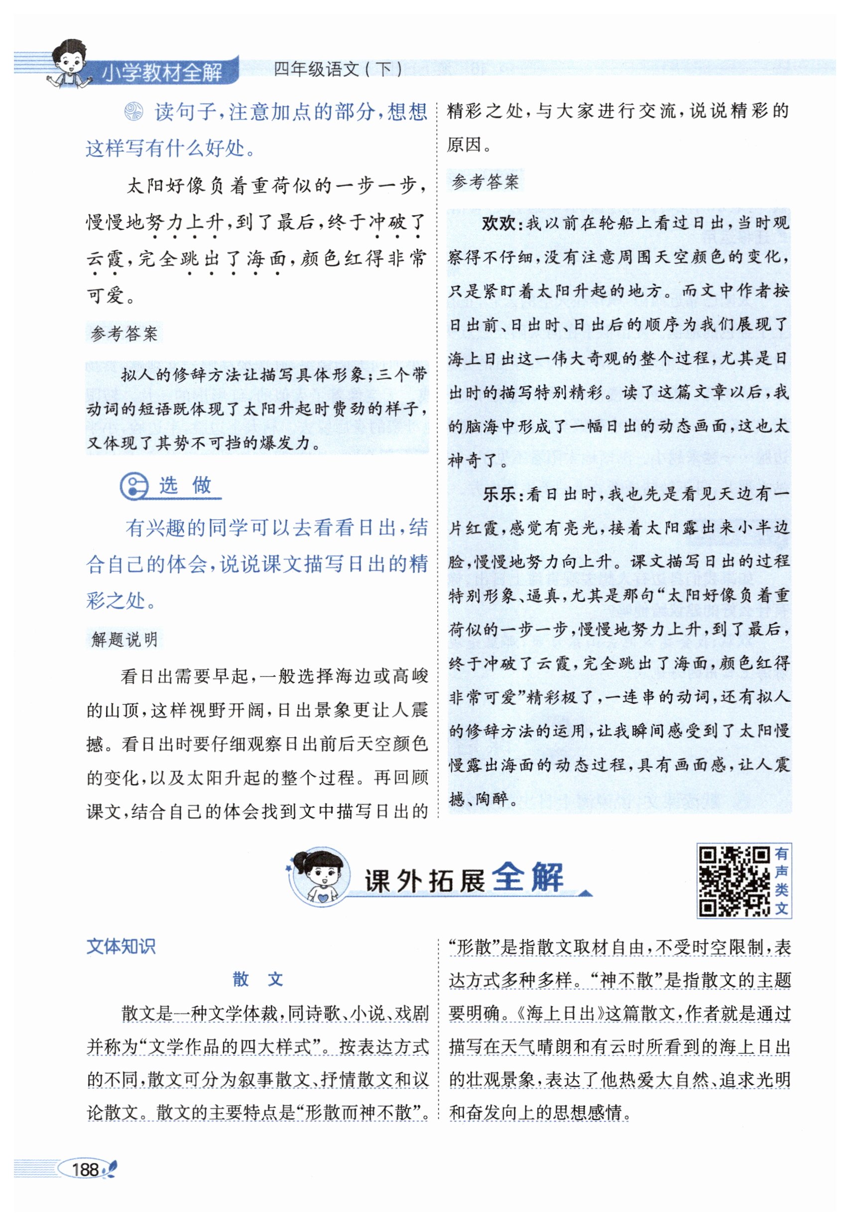 注:目前有些书本章节名称可能整理的还不是很完善,但都是按照顺序排列的,请同学们按照顺序仔细查找。练习册 2025年教材全解四年级语文下册人教版 答案主要是用来给同学们做完题方便对答案用的,请勿直接抄袭。