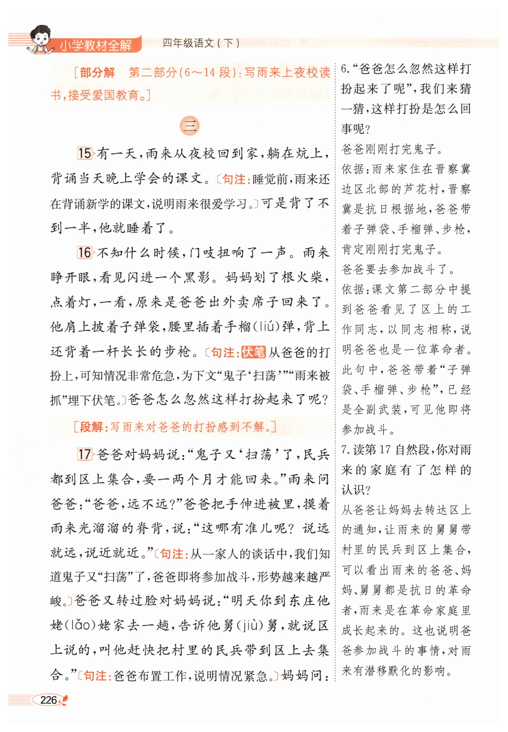 注:目前有些书本章节名称可能整理的还不是很完善,但都是按照顺序排列的,请同学们按照顺序仔细查找。练习册 2025年教材全解四年级语文下册人教版 答案主要是用来给同学们做完题方便对答案用的,请勿直接抄袭。