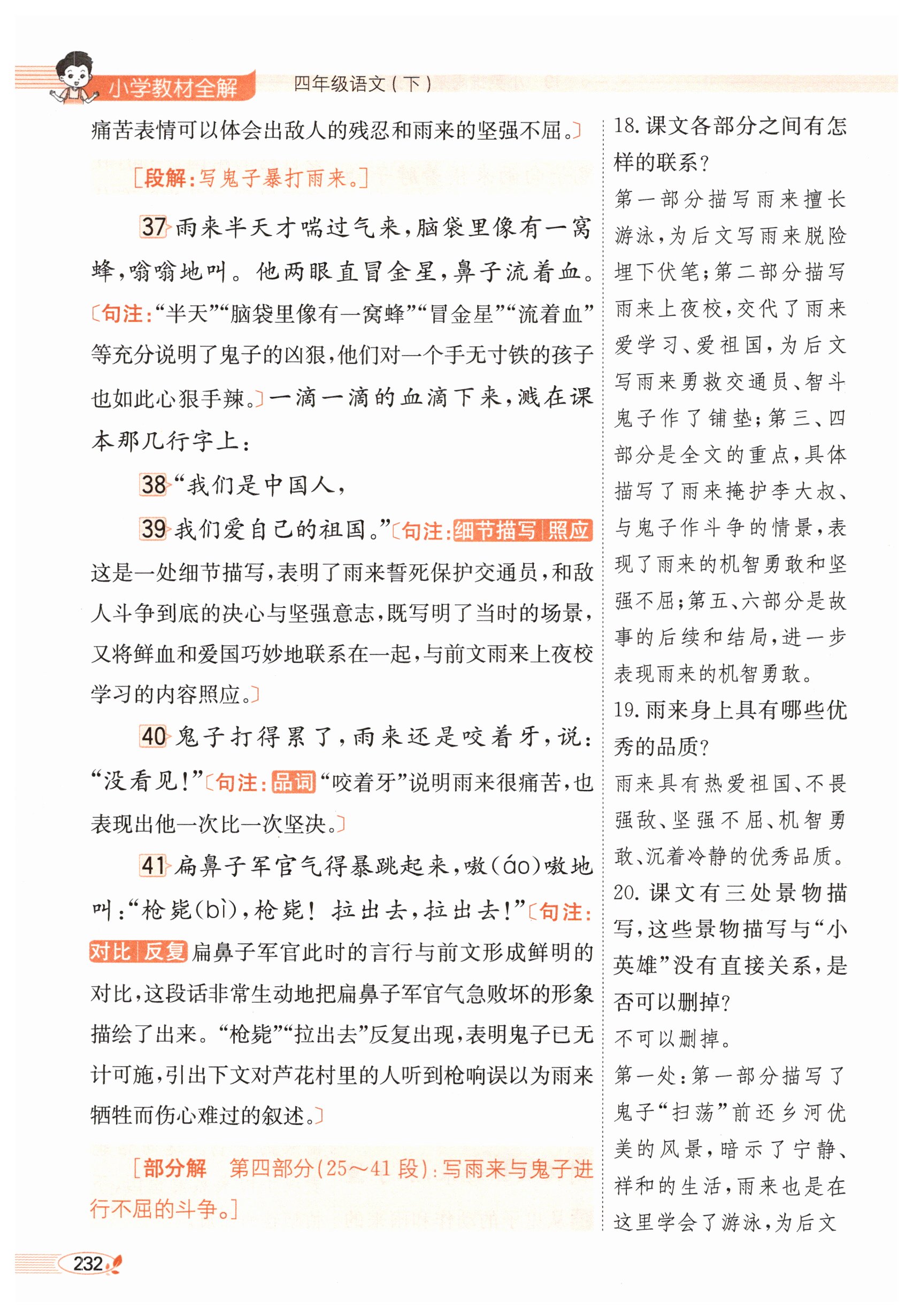 注:目前有些书本章节名称可能整理的还不是很完善,但都是按照顺序排列的,请同学们按照顺序仔细查找。练习册 2025年教材全解四年级语文下册人教版 答案主要是用来给同学们做完题方便对答案用的,请勿直接抄袭。
